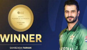 لاہور: ( نیوزڈیسک) پاکستان ٹیم کے اوپنر صاحبزادہ فرحان نے آئی سی سی پلیئر آف دی منتھ کا اعزاز اپنے نام کر لیا، جو انہوں...
