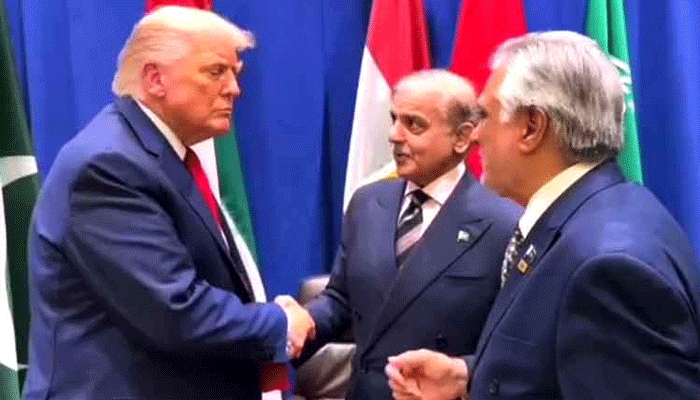 وزیراعظم شہباز شریف کی ڈونلڈ ٹرمپ سے غیر رسمی ملاقات، گرمجوشی سے مصافحہ
