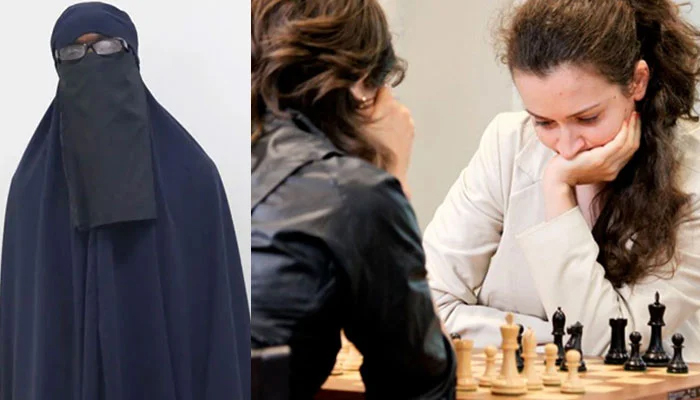 خواتین کے شطرنج ٹورنامنٹ میں برقع پہن کر نوجوان کی شرکت