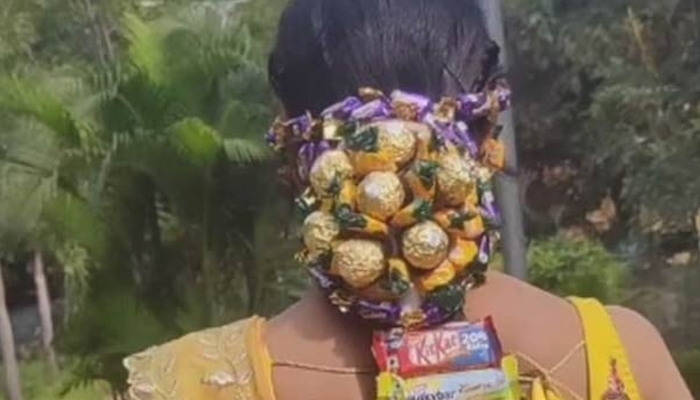 بالوں میں چاکلیٹ سجانے والی بھارتی دلہن کی ویڈیو وائرل