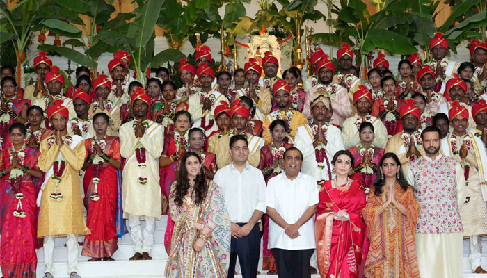 بیٹے کی شادی سے پہلے امبانی خاندان نے 50 غریب جوڑوں پر سونے، چاندی کی برسات کردی