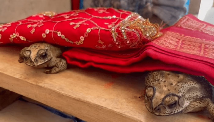 بارش کے دیوتا کو منانے کے لیے مینڈکوں کی شادی