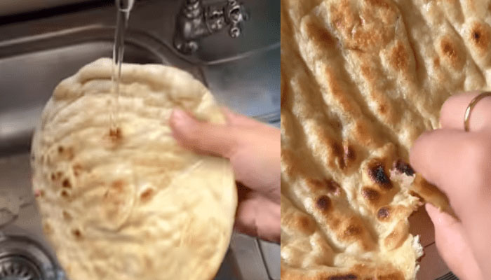 ’صفائی کا اتنا خیال‘؟ خاتون روٹی دھو کر کھاتی ہے
