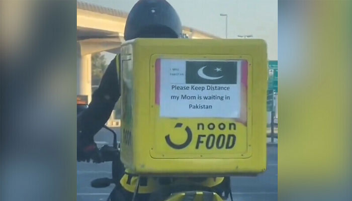 فاصلہ رکھیں ،میری ماں انتظار کررہی ہے ، خلیجی ملک میں پاکستانی فوڈ ڈیلیوری بوائے کاانوکھاانداز، ویڈیو وائرل