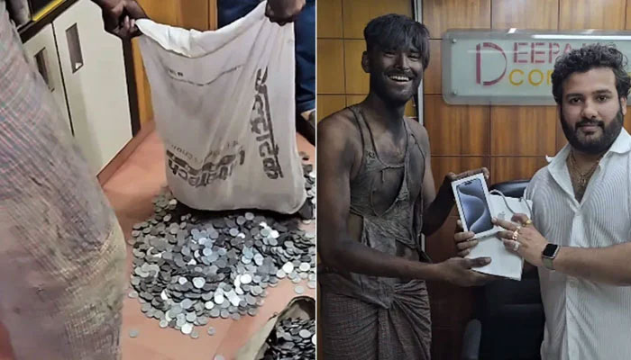آئی فون خریدنے بھکاری سکوں سے بھری بوری لیکر دکان پہنچ گیا، ویڈیو وائرل