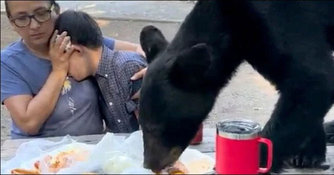پکنک پارٹی میں اچانک بھوکے ریچھ کی انٹری، ماں بیٹے کی حالت غیر