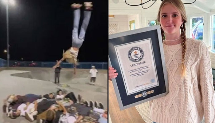 رولر اسکیٹس پہن کر 12 افراد کے اوپر سے قلابازی کا عالمی ریکارڈ
