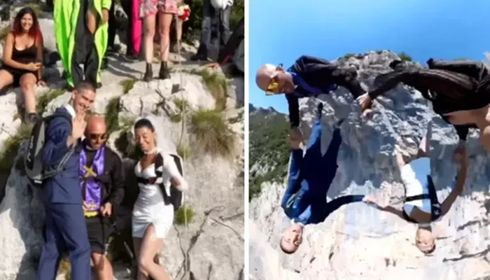 سنسنی خیر شادی : دولہا دلہن کا فضا میں زمینی ساتھ نبھانے کا عہد