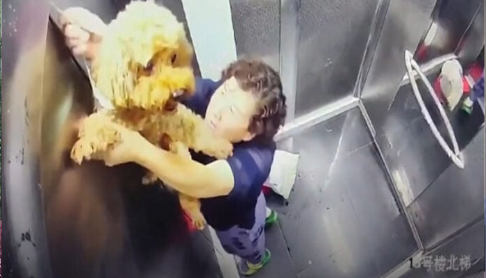 معمر خاتون کی حاضر دماغی، لفٹ میں پھنسے پالتو کتے کی جان بچا لی — ویڈیو وائرل