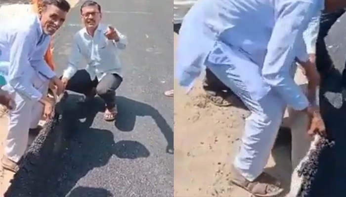 روڈ کارپٹنگ کا اصل مطلب : بھارتی ٹھیکیدار نے سڑک پرقالین بچھا ڈالا