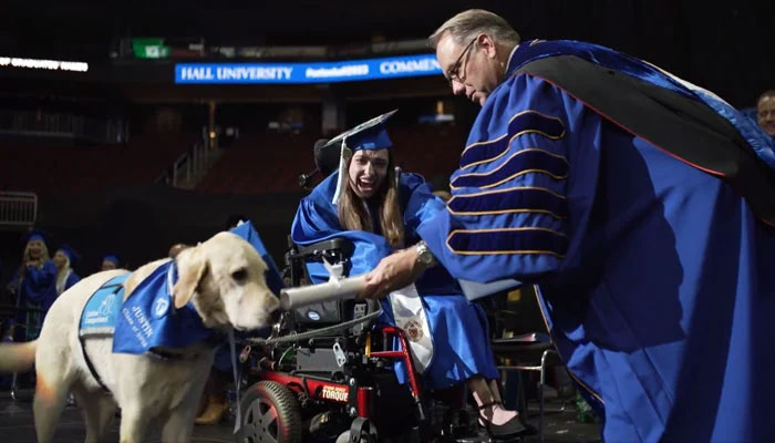 معذور طالبہ کی پڑھائی مکمل کرنے میں مدد کرنیوالے کتے کو بھی ڈگری مل گئی