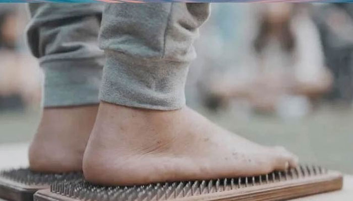 کینسر سے شفایاب مریض نے کیلوں والے تختے پر 12 گھنٹے کھڑے رہ کر ریکارڈ بنادیا