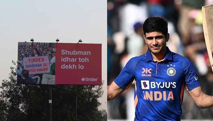 امیش یادیو کی جانب سے شیئر کی گئی تصاویر جگہ جگہ سڑکوں پر لگے ہورڈنگز کی ہیں جس میں ایک لڑکی نے میچ کے دوران گراؤنڈ میں پوسٹر اٹھا رکھا ہے جس پر ایک طرف تحریر ہے، ’ٹنڈر شبمن سے شادی میچ کرا دو‘، اور دوسری طرف لکھا ہے ‘شبمن ادھر تو دیکھ لو‘۔
