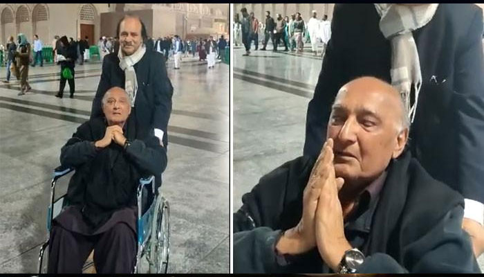 ڈاکٹر خالد نے ویڈیو کے کیپشن میں لکھا ‘آخری سفر سے پہلے مدینہ منورہ میں آخری بھرپور اور پرنم حاضری امجد اسلام امجد کی’۔