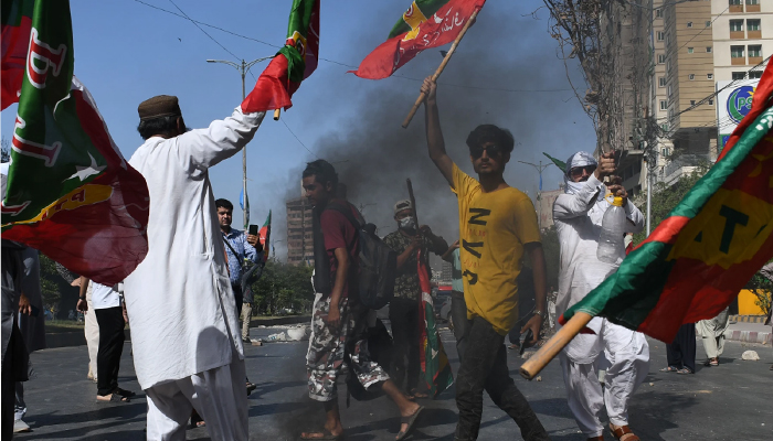 کراچی: شاہراہ فیصل پر ہنگامہ آرائی اور جلاؤ گھیر اؤ کے الزام میں پی ٹی آئی کراچی کی قیادت اور سیکڑوں کارکنوں پر مقدمہ درج کرلیا گیا۔