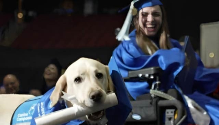 نیوجرسی: امریکہ میں واقع سیٹن ہال یونیورسٹی میں ایک مددگار کتے کو اس کی مالکن کے ساتھ ڈپلوما کی ڈگری دی گئی ہے۔ اس کے لیے خصوصی طور پر ڈوگی ڈپلوما بنایا گیا تھا۔