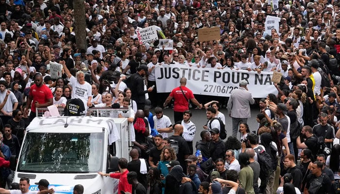 مقتول کی والدہ کی قیادت میں پیرس میں ہزاروں افراد نے ریلی نکالی گئی۔