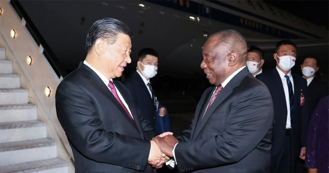 صدر رامفوسا نے جنوبی افریقہ کے سرکاری دورے پر چینی صدر کا گرمجوشی سے خیرمقدم کیا۔