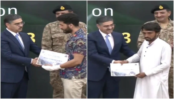 نگران وزیراعظم انوارالحق کاکڑ نے آپریشن میں حصہ لینے والوں کو اعزازی اسناد پیش کیں۔