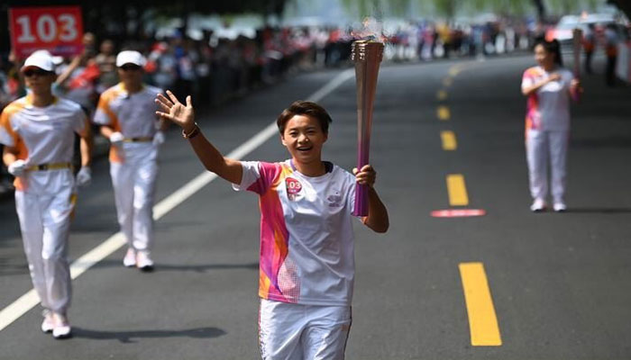 2004 کی اولمپک گیمز میں خواتین کی 100 میٹر بریسٹ اسٹروک کی فاتح تیراکی کی عظیم کھلاڑی لو شوئی جوان جمعہ کو ریلی کے دوران 106 مشعل برداروں میں سے پہلی مشعل بردار تھیں۔
