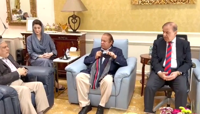 لندن(نیوزڈیسک)قائد مسلم لیگ ن محمد نواز شریف اور صدر جماعت شہباز شریف کی پاکستان سے آئے لیگی رہنماؤں سے ملاقات ،ملکی سیاسی صورتحال پر تبادلۂ خیال کیا گیا، اس موقع پر سینیٹر اسحاق ڈار اور مریم نواز شریف بھی موجود تھیں ۔