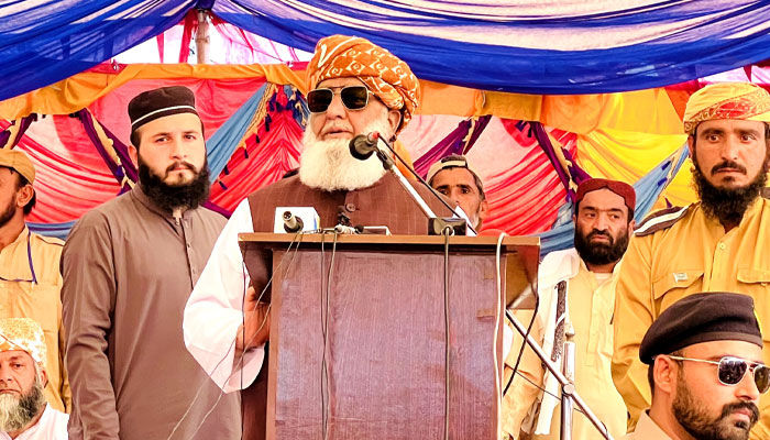 سربراہ جے یو آئی نے سوال اٹھایا کہ کیا ہم نے بحیثیت قوم اپنا محاسبہ کیا ہے، 75 سال ہم نے پرانی لکیروں کی پیروی کی، اب ہم تھک چکے ہیں، ہمیں امریکا کی غلامی قبول نہیں، ایٹمی ملک ہونے کے باوجود ہم خوفزدہ ہیں۔