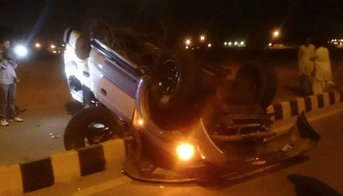 پولیس کے مطابق ڈیفنس فیز 8 میں کار سڑک کے بیچ میں لگے کھمبے سے ٹکرا گئی، حادثہ تیز رفتاری کی وجہ سے پیش آیا۔