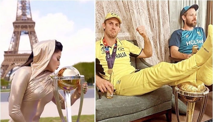 19 نومبر کو آئی سی سی ورلڈکپ فائنل میں بھارت کو ہوم گراؤنڈ پر شکست دینے کے بعد آسٹریلیا نے چھٹی مرتبہ ٹرافی اپنے نام کی، بعدازاں آسٹریلوی آل راؤنڈر مچل مارش کی ٹرافی کے اوپر پاؤں رکھ کر آرام کرنے کی تصویر سوشل میڈیا پر وائرل ہوئی تو بھارتی آگ بگولہ ہوگئے۔