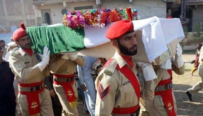 راولپنڈی: بلوچستان کے مختلف علاقوں میں دہشتگرد حملوں کے دوران بہادری سے لڑتے ہوئے جامِ شہادت نوش کرنے والے جوانوں کو سپرد خاک کردیا گیا۔