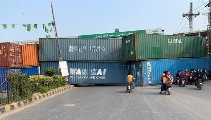 ذرائع کے مطابق اسلام آباد کی ضلعی انتظامیہ نے کل سڑکوں پر کنٹینرز لگانے کا فیصلہ کیا ہے۔ کنٹینرز رکھ کر شہر کے داخلی اور خارجی راستوں کو سیل کیا جائے گا۔ مری روڈ فیض آباد کے مقامل پر کنٹینرز سڑک کے اطراف رکھ دئیے گئے ہیں۔