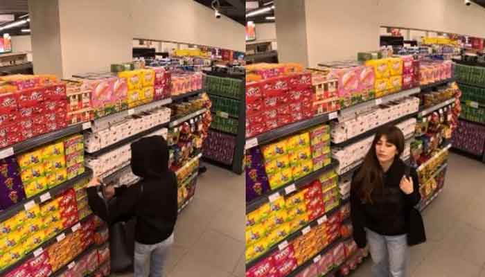 لیکن اس ویڈیو کا سب سے حیران کن لمحہ وہ ہے جب سائرہ ایک ریک کے قریب رکتی ہیں، چاروں طرف نظر ڈالتی ہیں، اور پھر ہوڈی سے اپنا چہرہ چھپاتے ہوئے چاکلیٹس کے ڈبوں کو اپنے بیگ میں رکھ لیتی ہیں۔ اس کے بعد وہ جلدی سے اسٹور سے باہر نکل جاتی ہیں۔