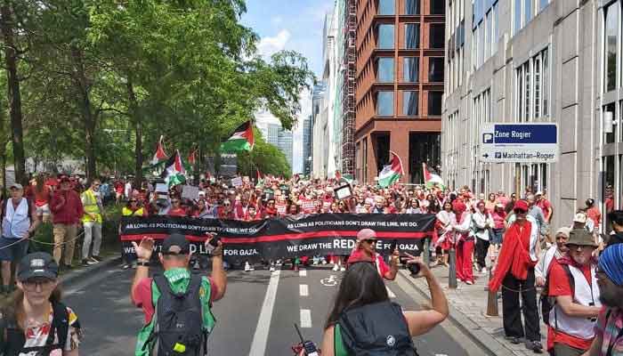 اس مظاہرے کو ریڈ لائن کا نام دینے کا مقصد عوام کی جانب سے یورپین حکومتوں کی بے حسی کو اجاگر کرکے یہ بتانا بھی تھا کہ اسرائیل کی جانب سے غزہ کے فلسطینیوں پر یکطرفہ طور پر مسلط کی جانے والی تباہی کے خلاف اب عوام کی سرخ لائن آچکی ہے۔