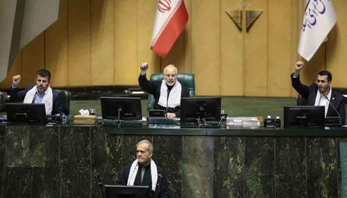 تہران: ایرانی پارلیمنٹ میں صدر ایران مسعود پزشکیان کی تقریر کے دوران ایوان پاکستان سے اظہارِ تشکر کے نعروں سے گونج اُٹھا۔ایرانی صدرکی طرف سے اپنی تقریرمیں اسرائیلی جارحیت کے خلاف ایران کے لئے پاکستان کی بھرپورحمایت کے ذکرپر ارکان نے پاکستان سے اظہارتشکرکے نعرے لگاناشروع کردیئے۔
