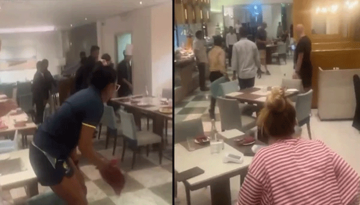 اس حوالے سے وائرل ویڈیو میں کھلاڑیوں نے بتایا کہ ڈنر ختم ہی کیا تھا اور جانے والے تھے کہ اچانک چوہا نکل آیا۔
