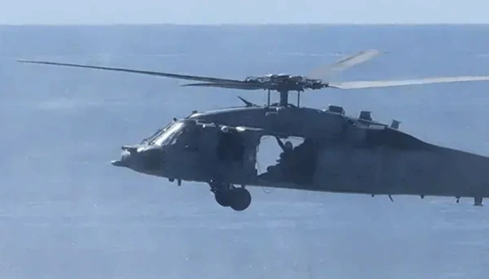 خبر رساں ادارے اے ایف پی کے مطابق، پہلا حادثہ اس وقت پیش آیا جب ایم ایچ-60 آر سی ہاک ہیلی کاپٹر طیارہ بردار بحری جہاز یو ایس ایس نیمٹز سے معمول کی پرواز کے دوران سمندر میں گر گیا۔ امریکی بحریہ کے بحرالکاہل بیڑے کے مطابق، ہیلی کاپٹر میں موجود تینوں اہلکاروں کو سرچ اینڈ ریسکیو ٹیموں نے محفوظ طریقے سے بچا لیا۔