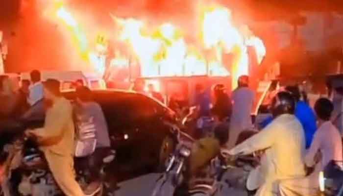 کراچی، تیز رفتار کوچ کی ٹکر، شہری جاں بحق، مشتعل افراد نے کوچ نذر آتش کردی