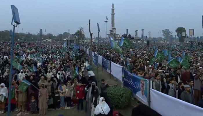 لاہور کے مینار پاکستان پر منعقدہ اجتماع عام سے خطاب کرتے ہوئے انہوں نے کہا کہ اللہ کے بنائی ہوئی زمین پر نظام بھی اللہ کا ہوگا، کوئی بھی انسان سے اللہ کے قانون سے بڑا اورطاقتور نہیں ہے، مینارکستان کے سائے تلے لاکھوں لوگ یہ عہد کرتے ہیں کہ اللہ کے علاوہ کسی کی بالادستی قبول نہیں کریں۔
