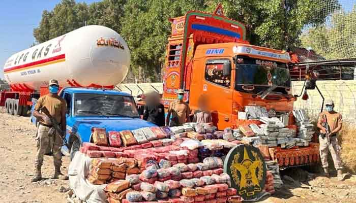کراچی:(نیوزڈیسک)اینٹی نارکوٹکس فورس (اے این ایف) نے بلوچستان میں کارروائی کے دوران ایل پی جی گیس کنٹینرسے 154.15 ملین ڈالر مالیت کی منشیات کی بھاری مقدار تحویل میں لے لی اور ڈرگ ٹریفکنگ تنظیم(ڈی ٹی او)کے دو کارندوں کو گرفتار کرلیا۔