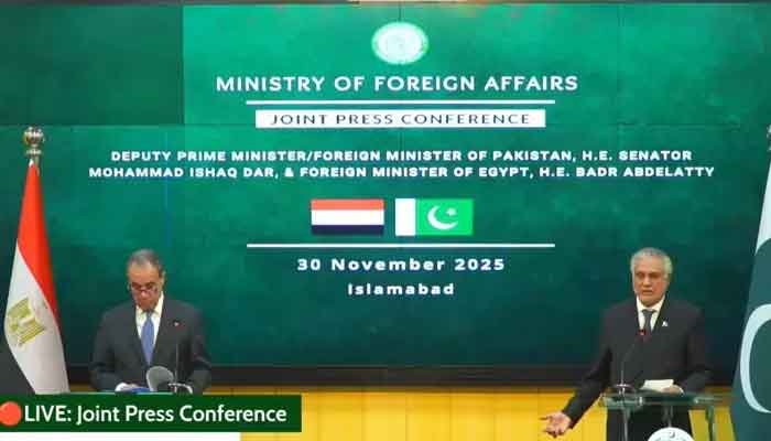 یہ بیان انہوں نے میڈیا سے گفتگو کے دوران دیا، جب کہ ان کے ہمراہ مصری وزیر اعظم بدر عبد العاطی بھی موجود تھے، جو 2 روزہ سرکاری دورے کے لیے گزشتہ رات اسلام آباد پہنچے، دورے کے دوران بدر عبد العاطی کئی اہم امور پر بات چیت کریں گے، جن میں غزہ اور سوڈان کے تنازعات، ایرانی جوہری پروگرام پر اختلافات، اور اقتصادی تعاون بڑھانے کے طریقے شامل ہیں۔