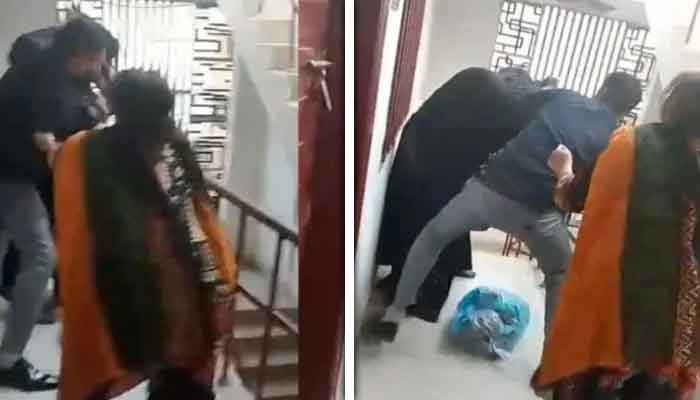 گھریلو ملازمہ پر تشدد کی ویڈیو بھی منظرعام پر آگئی ہے جس میں دیکھا جاسکتا ہے کہ خاتون پر تشدد کے علاوہ اسے سیڑھیوں سے دھکا بھی دیا گیا۔