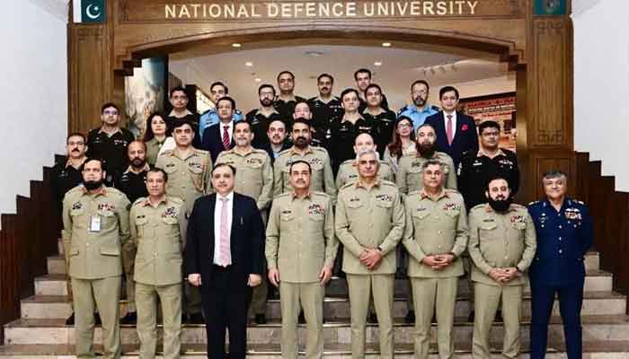 اسلام آباد (نیوزڈیسک)چیف آف ڈیفنس فورسز فیلڈ مارشل عاصم منیر نے نیشنل ڈیفنس یونیورسٹی (این ڈی یو) کا دورہ کیا، اس موقع پر خطاب کرتے ہوئے کہا کہ مستقبل کے قائدین کو پیچیدہ اور ذہنی جنگی چیلنجز کیلئے تیار رہنا ہو گا۔