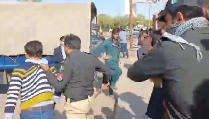 نمائش چورنگی پر کارکنان کو حراست میں لینے کا سلسلہ بھی جاری ہے، پولیس کی جانب سے وقفے وقفے سے نمائش چورنگی پر جمع ہونے والے کارکنان پر لاٹھی چارج کیا گیا جب کہ ایک کارکن پر پولیس اہلکار کی جانب سے تھپیڑ مارے گئے۔