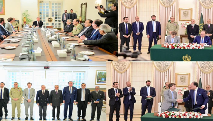 اسلام آباد:(نیوزڈیسک) وزیر اعظم محمد شہباز شریف اور چیف آف ڈیفنس فورسز و چیف آف آرمی سٹاف فیلڈ مارشل سید عاصم منیر نے حکومت اور ایس سی فنانشل ٹیکنالوجیز ایل ایل سی کے درمیان مفاہمت کی یادداشت پر دستخط کا مشاہدہ کیا، جو کہ ورلڈ لبرٹی فنانشل سے منسلک ادارہ ہے، تاکہ ڈیجیٹل ادائیگی کے آرکیٹیکچرز کے بارے میں مکالمے اور تکنیکی سمجھ بوجھ کے تبادلوں کو ممکن بنایا جا سکے۔ وزیر خزانہ محمد اورنگزیب اور سی ای او ورلڈ لبرٹی فنانشل زچری وٹکوف نے مفاہمتی یادداشت پر دستخط کیے۔