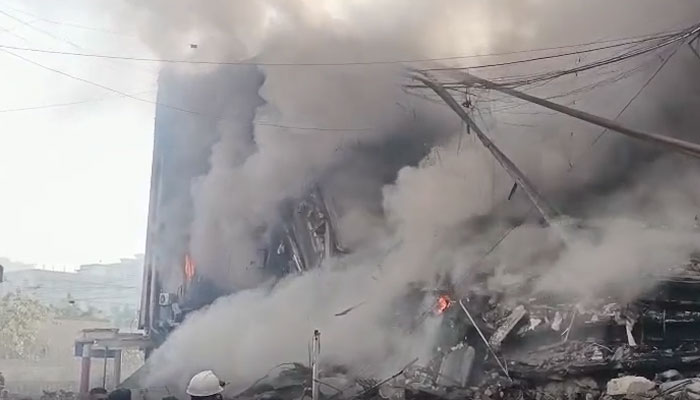 کراچی میں آتشزدگی کے باعث گل پلازہ عمارت کے دو حصے منہدم ہوگئے جبکہ فائر فائٹر سمیت 6 افراد جاں بحق ہوگئے۔