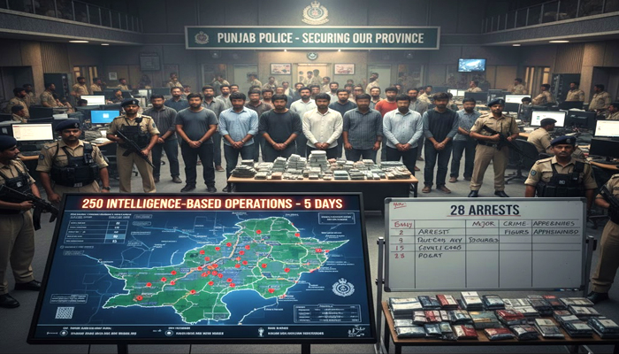 پولیس ترجمان کے مطابق گزشتہ پانچ دنوں کے دوران لاہور اور دیگر اضلاع میں کل 250 انٹیلی جنس بیسڈ آپریشنز کیے گئے۔ ان کارروائیوں کے دوران تقریباً 6 ہزار 139 افراد سے پوچھ گچھ کی گئی، جن میں سے 28 جرائم پیشہ افراد کو حراست میں لیا گیا۔