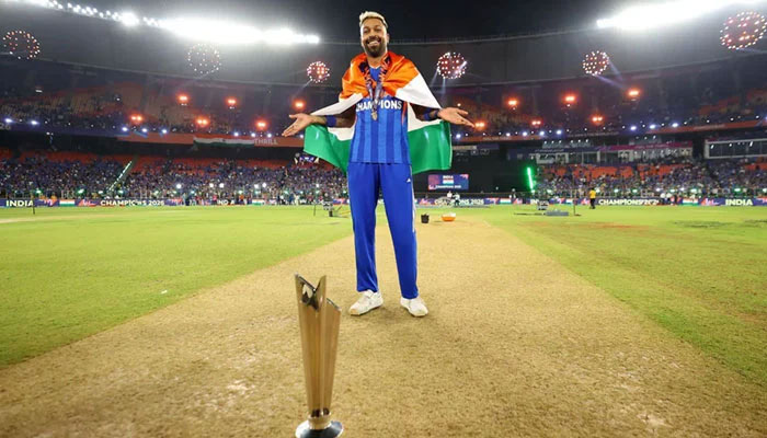 نیوزی لینڈ کو فائنل میں شکست کے دینے کے بعد جشن کے دوران ہاردیک پانڈیا کی گرل فرینڈ مہیکا شرما گراؤنڈ میں موجود تھیں، ہاردیک پانڈیا کی جانب سے بھارتی جھنڈا لپیٹ کر خاتون دوست کے ساتھ جشن منانا ’فحش عمل‘ قرار دے دیا گیا۔