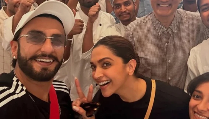 تصویر میں رنویر اور دپیکا ایک سادہ اور پُرسکون وقت گزارتے ہوئے نظر آ رہے ہیں، جہاں وہ عملے کے ساتھ پوز دیتے دکھائی دیے۔ ان کے ساتھ رنویر کے والد جگجیت سنگھ بھاونانی بھی موجود تھے۔