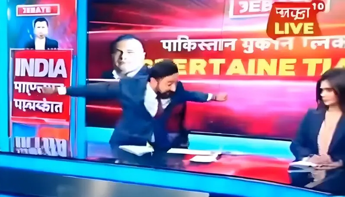 بھارت کے معروف اینکر ارنب گوسوامی اکثر پاکستان کے خلاف سخت مؤقف اختیار کرتے ہیں، مگر سوشل میڈیا پر وائرل ایک اور ویڈیو میں ایک بھارتی اینکر پاکستان کی سفارتی کامیابی پر جذباتی ہوتے ہوئے نیوز روم کا سیٹ توڑ دیتا دکھائی دیتا ہے۔ ویڈیو میں اینکر کہتا ہے: