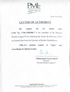 پشاور (نیوز ڈیسک) خیبر پختونخوا سے سینیٹ کی خالی نشست پر ہونے والے ضمنی انتخابات کے لیے پاکستان مسلم لیگ (ن) کے امیدوار اصغر علی نے اپنے کاغذاتِ نامزدگی جمع کرا دیے ہیں، جن کی جانچ پڑتال بھی مکمل کر لی گئی ہے۔