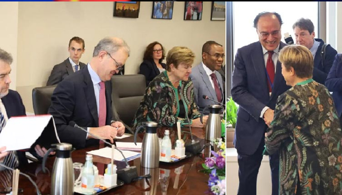 وزیرِ خزانہ محمد اورنگزیب نے آئی ایم ایف کی منیجنگ ڈائریکٹر سے ملاقات کی، جس میں پاکستان کے معاشی استحکام، اصلاحاتی اقدامات اور جاری پروگرام پر عملدرآمد سے متعلق امور پر تبادلۂ خیال کیا گیا۔